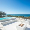 The outdoor spaces comprises a pristine swimming pool and outdoor living area arranged around a fire pit.