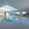 Surrounded by stunning countryside, this modern retreat boasts a huge swimming pool, extensive grounds, breath-taking views of the valley and state-of-the-art interiors. Grassy lawns lead from the private 9 hectare oak forest complete with a quaint creek up to the house's pretty facade.