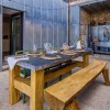 There is also a unique outdoor firepit with an open-air fire and benches for the nights where there is a slight bite in the air. There are multiple outdoor dining spaces and daybeds located around the swimming pool, meaning there is always a chill area for the whole party.