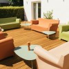 • A bright and inviting sitting/dining area, complete with smart TVs inside and outside